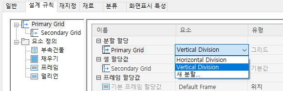 - 해당 그리드의 요소 열을 클릭하고 리스트에서 분할 정의를 선택합니다.