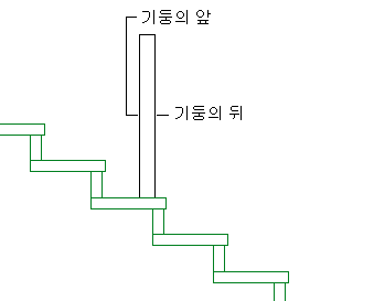 다음 그림과 같이 입면도의 계단에서 상하 방향에 대해 기둥 방향을 지정합니다.
