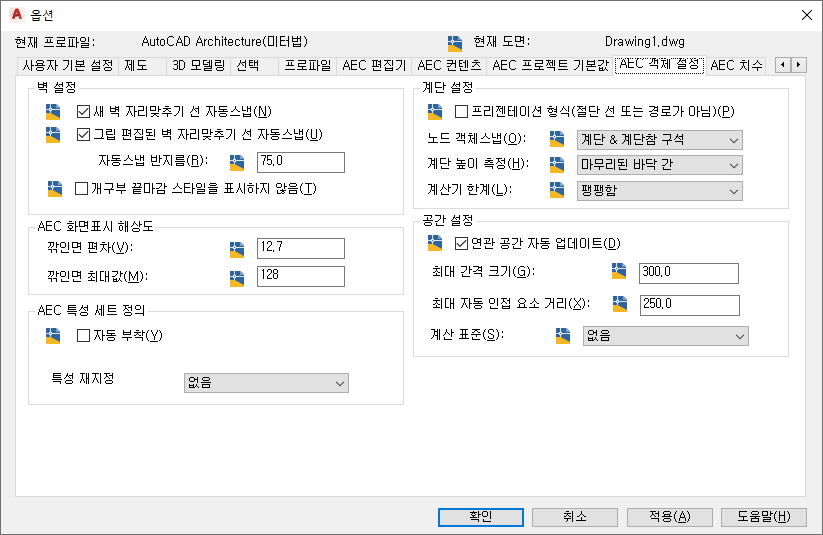 팁: 또는 명령행에 AECSPACEMAXAUTOADJACENCY를 입력하여 공간 표면 간의 최대 자동 인접 요소를 설정할 수 있습니다.