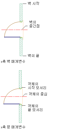 | 벽의 시작을 참조점으로 사용 | (X)를 따라 위치의 시작에서 벽의 시작(곡선)을 선택합니다. |