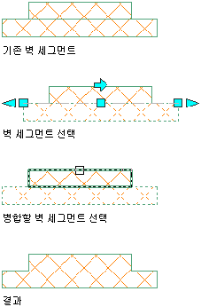 다음 절차에 따라 선택한 벽의 프로파일을 병합하십시오. 이렇게 하면 자동으로 벽이 마무리되지는 않지만 짧은 벽 세그먼트가 있는 상황에서는 유용합니다.