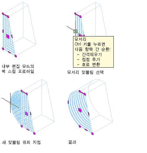 내부 편집 벽 스윕 프로파일 모서리 간격띄우기