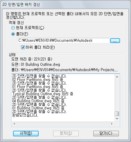| 특정 폴더의 2D 단면 및 입면 업데이트 |