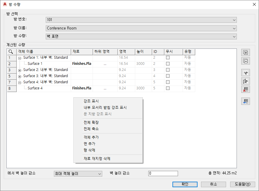 벽 표면 재료 면적