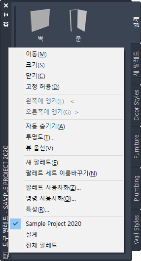 도구 팔레트 세트를 열려면