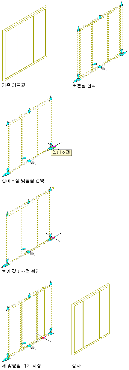 다음 절차에 따라 그립을 사용하여 커튼월 길이를 변경하십시오.