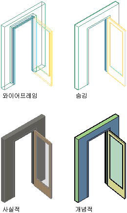 와이어프레임, 숨겨진, 사실적 및 개념적 비주얼 스타일 표현의 문