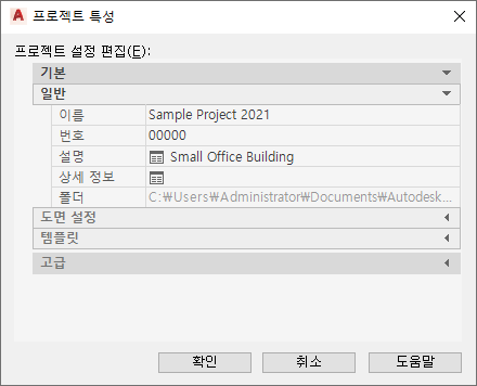 주: 도면 설정 아래에서 프로젝트 번호가 프로젝트에서 작성된 각 프로젝트 도면에 접두어로 추가되도록 지정할 수 있습니다. 프로젝트 수명 주기 동안 프로젝트 번호를 변경하면 기존 파일 이름이 변경되고 경로가 재지정됩니다.