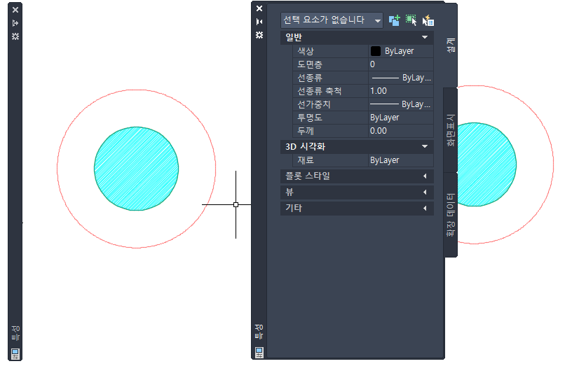 다음 과정에 따라 사용하지 않을 때는 특성 팔레트를 숨기십시오. 특성 팔레트는 특성 팔레트 밖으로 커서를 이동하면 숨겨지고 제목 막대에만 표시됩니다. 제목 막대 위에서 커서를 움직이면, 특성 팔레트가 다시 표시됩니다.