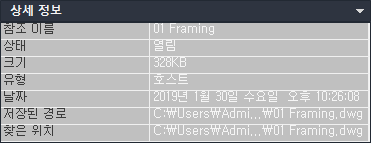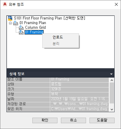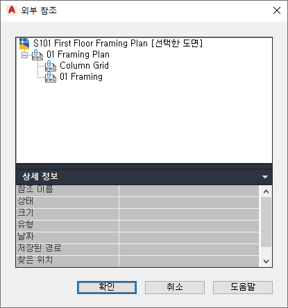 - 외부 참조 대화상자에서 외부 참조의 상세 정보를 봅니다.
