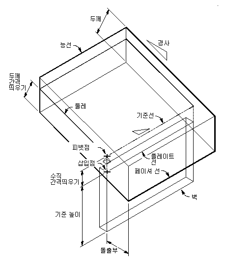 슬래브 및 지붕 슬래브는 자체의 고유한 스타일 범주를 가지며, 여기서 각 스타일은 특정 유형의 슬래브 또는 지붕 슬래브에 대한 기본 특성을 지정합니다. 이러한 특성에는 치수, 페이셔 및 밑면의 모서리 스타일, 도면층, 색상 및 선종류에 대한 도면요소 특성이 포함됩니다. 슬래브 및 지붕 슬래브 스타일을 통해 각 모서리에 다른 모서리 스타일을 사용할 수 있습니다.