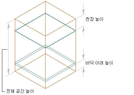 | 바닥에서 천장까지의 높이, 천장 및 바닥 두께, 천장 위의 공간 및 바닥 아래의 공간을 포함하여 공간의 전체 높이 지정 | 전체 공간 높이에 값을 입력합니다. |