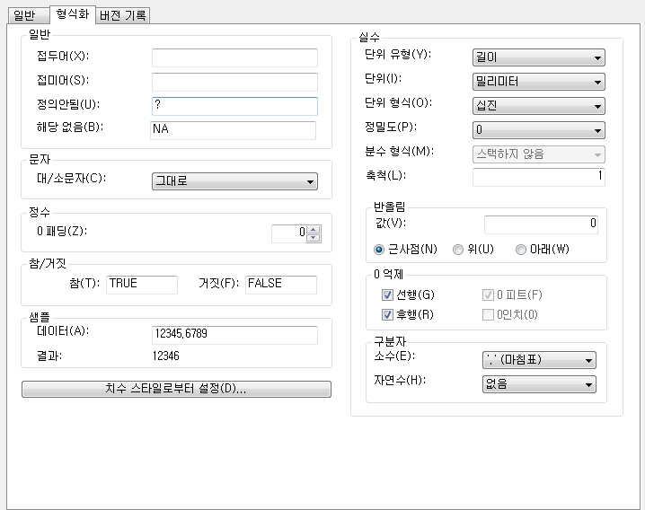 데이터 형식을 일람표 데이터에 적용할 때 해당 특성의 데이터 유형에 대해 지정된 설정을 사용하여 각 특성 값이 표시됩니다. 예를 들어, 동일한 일람표 데이터 형식으로 치수 값에서는 실수 설정을 사용하는 한편, 주석에서는 문자 설정을 사용하도록 지정할 수 있습니다.