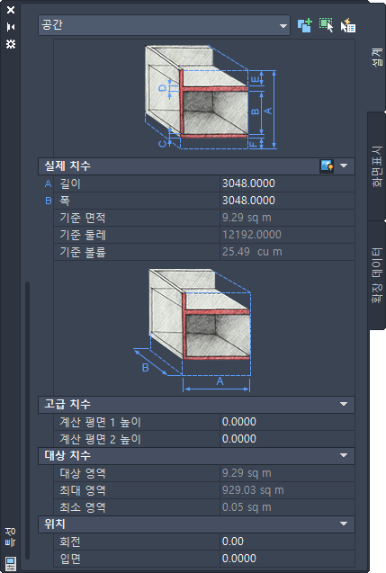 3D 자유형 공간으로 작업을 수행할 경우 두 가지 서로 다른 절단 평면 높이에서 3D 자유형 공간의 영역을 계산할 수 있습니다. 이 방식은 서로 다른 높이를 서로 다르게 계산하는 다락에 유용합니다.