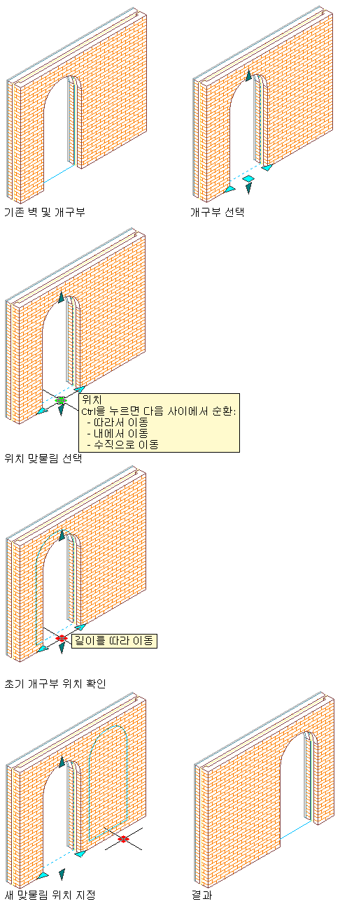 다음 절차에 따라 참조 위치에서 개구부를 간격띄우기하여 벽을 따라 개구부 위치를 변경하십시오.