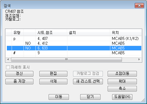 시트 6에 있는 CR407 복제가 검색되어 검색 대화상자 옆에 있는 도면에 표시됩니다.