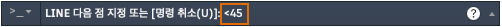 지정된 각도로 선을 그려야 하는 경우 다음 점에 대한 각도를 잠글 수 있습니다. 예를 들어, 선의 두 번째 점을 45도 각도로 작성해야 하는 경우, 명령 윈도우에 <45를 입력합니다.