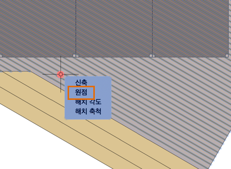 해치의 패턴을 정렬해야 하는 경우(예: 위의 데크 보드) 해치의 원점 그립 위로 마우스를 가져간 후 원점을 선택하여 정렬 점을 지정합니다.
