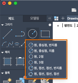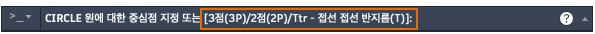 또한 명령 윈도우에 CIRCLE 또는 C만 입력하고 옵션을 지정할 수도 있습니다.