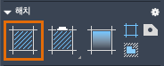 HATCH 명령을 시작하면 해치 바이저가 일시적으로 표시됩니다. 이 바이저에서는 업계 표준 영국식 및 ISO 해치 패턴과 특수화된 많은 옵션 중에서 선택할 수 있습니다.