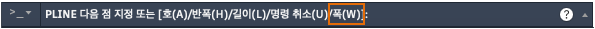 폴리선은 폭이 일정하거나 시작 및 끝 폭이 다를 수 있습니다. 폴리선의 첫 번째 점을 지정한 후 폭 옵션을 사용하여 이후에 작성된 모든 세그먼트의 폭을 지정할 수 있습니다. 새 세그먼트를 작성할 때를 비롯하여 언제든지 폭 값을 변경할 수 있습니다.