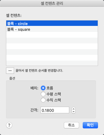 셀 컨텐츠 관리다음과 같은 옵션이 표시됩니다.