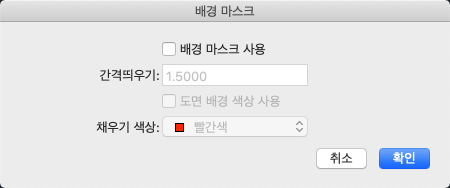 불투명 배경의 색상을 지정합니다. 리스트에 있는 색상 중에서 하나를 선택하거나 색상 선택을 클릭하여 색상 팔레트 대화상자를 열 수 있습니다.