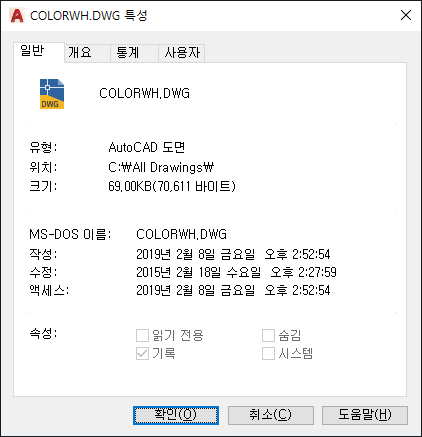 운영 체제에서 파생되는 도면 파일에 대한 읽기 전용 정보를 표시합니다.