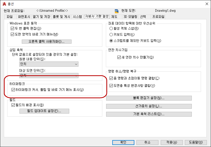 옵션 대화상자의 사용자 기본 설정 탭에서 하이퍼링크 정보 표시를 사용하도록 설정합니다.