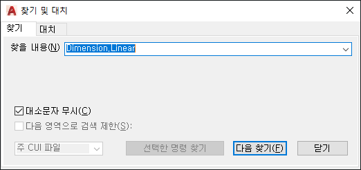 명령 또는 명령 특성(명령 이름, 설명 또는 매크로)을 찾아 대체합니다. 찾기 탭을 사용하여 지정된 문자열의 위치를 찾고, 대치 탭을 사용하여 지정된 문자열을 찾아 대치합니다.