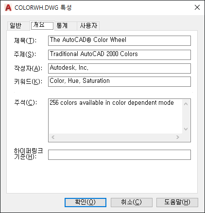 이 도면을 검색할 때 사용할 제목을 지정합니다. 제목은 도면 파일 이름과 다를 수 있습니다.