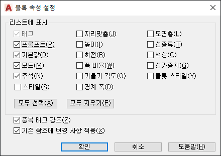 블록 속성 관리자의 속성 리스트 모양을 조정합니다.
