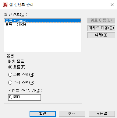 블록을 테이블 셀에 삽입하면 블록이 자동으로 셀 크기에 맞게 조절되거나 셀이 블록 크기에 맞게 조절될 수 있습니다. 블록은 바로 가기 메뉴에서 삽입할 수 있습니다. 한 셀에 여러 블록을 삽입할 수 있습니다. 셀에 두 개 이상의 블록이 있으면 셀 컨텐츠 관리 대화상자를 사용하여 셀 컨텐츠가 표시되는 방식을 사용자화합니다.
