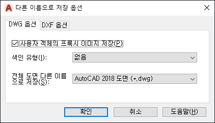 다른 이름으로 저장 옵션 대화상자의 색인 유형에서 도면층, 공간 또는 도면층 및 공간을 선택한 다음 확인을 클릭합니다.