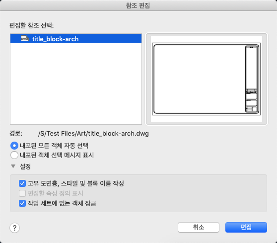 이 옵션을 선택하면 선택한 참조의 모든 객체가 참조 편집 세션에 자동으로 포함됩니다.