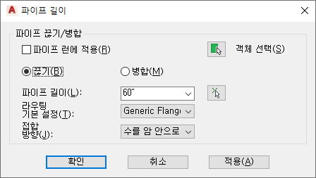 | 전체 파이프 런에 길이 명령 적용 | 파이프 런에 적용을 선택합니다. |