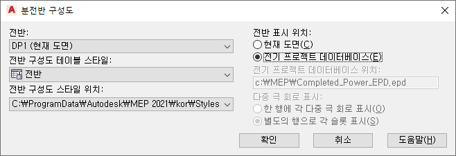 회로 관리자를 사용하여 현재 도면에서 분전반 구성도를 생성하려면