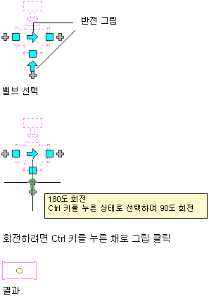 평면도에서 3방향 밸브를 90도 회전