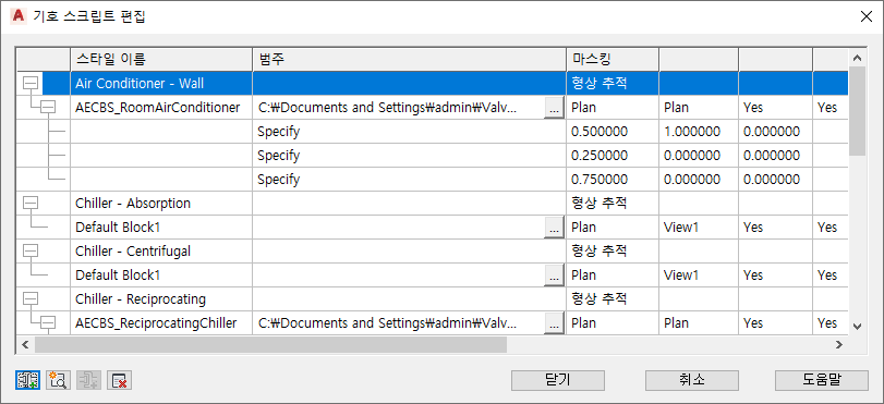 스크립트의 소스 블록 특성은 탭에 표시되지 않습니다. 스타일 관리자를 사용하여 스타일 뷰를 작성할 때는 현재 도면의 블록만 선택하도록 제한되기 때문에 소스 AutoCAD 블록이 포함된 도면의 파일 경로를 지정하지 않습니다.