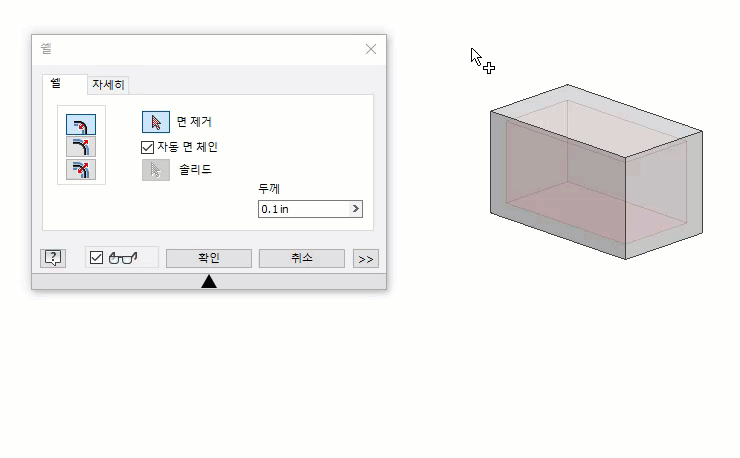 고유한 면 두께를 지닌 쉘 작성 방법 보기