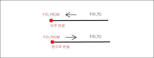 특정 피쳐(FID_FROM)와 연결된 피쳐(FID_TO) 간의 흐름 방향을 지정합니다.