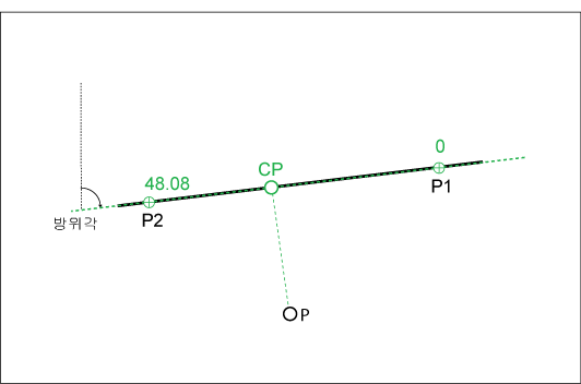 에서 선과 호에 직교 투영 점을 결정합니다.