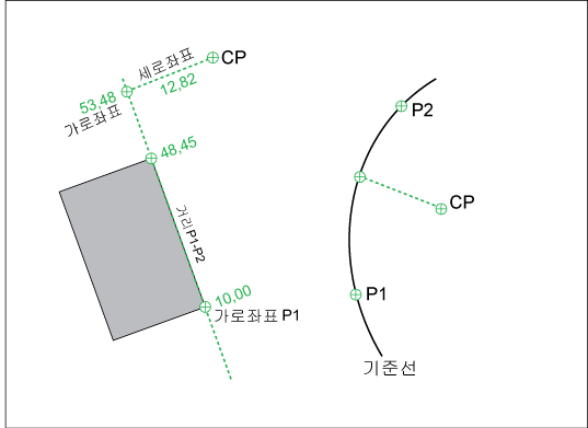 엔터프라이즈 산업 모형 의 직교 측량에 직교 계산 기능을 사용할 수 있습니다. 기준 요소는 기존 선으로 표현되거나 따로 둘 수 있는 두 점을 사용하여 정의할 수 있습니다. 계산이 수행되면 측정 및 계산된 치수가 고려됩니다.