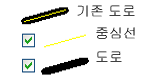 두꺼운 검정색 연속선과 얇은 노란색 점선을 결합하여 도로 스타일을 지정합니다.
