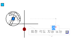 각도를 입력하거나 원하는 위치로 끕니다. 연관된 뷰포트의 화면표시 지도가 화살표에 맞게 회전합니다.