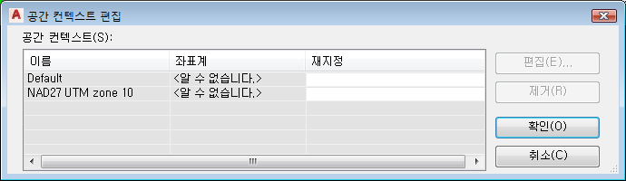 - 좌표계 편집을 클릭하고 공간 컨텍스트 편집 대화상자에서 항목을 클릭합니다.