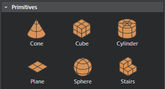 Primitives are simple shapes, 1-meter square by default, that you can use to prototype scenes quickly.