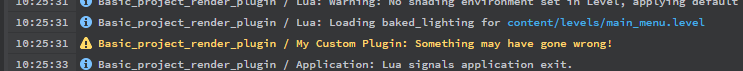 It's often a good idea for your plug-in to send back some feedback to the user, especially when things go wrong. The engine already has a mechanism for logging messages, which a user working in the editor can see in the Log Console. Your plug-in can have the engine re-use the same mechanism for its own messages.