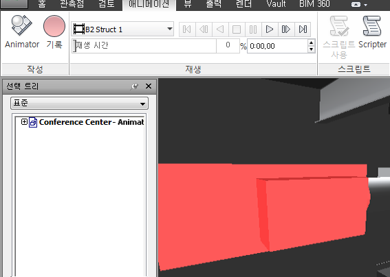 - 리본에서 애니메이션 탭을 클릭합니다. 재생 패널의 재생 위치 슬라이더가 정확한 간섭 발생 지점으로 이동합니다. 슬라이더를 이동하여 간섭 전후에 바로 발생하는 이벤트를 조사할 수 있습니다.