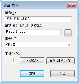 버튼을 클릭하면 이 링크와 연관된 모든 부착점이 삭제되고 링크가 항목 경계 상자의 중심에 다시 연결됩니다.